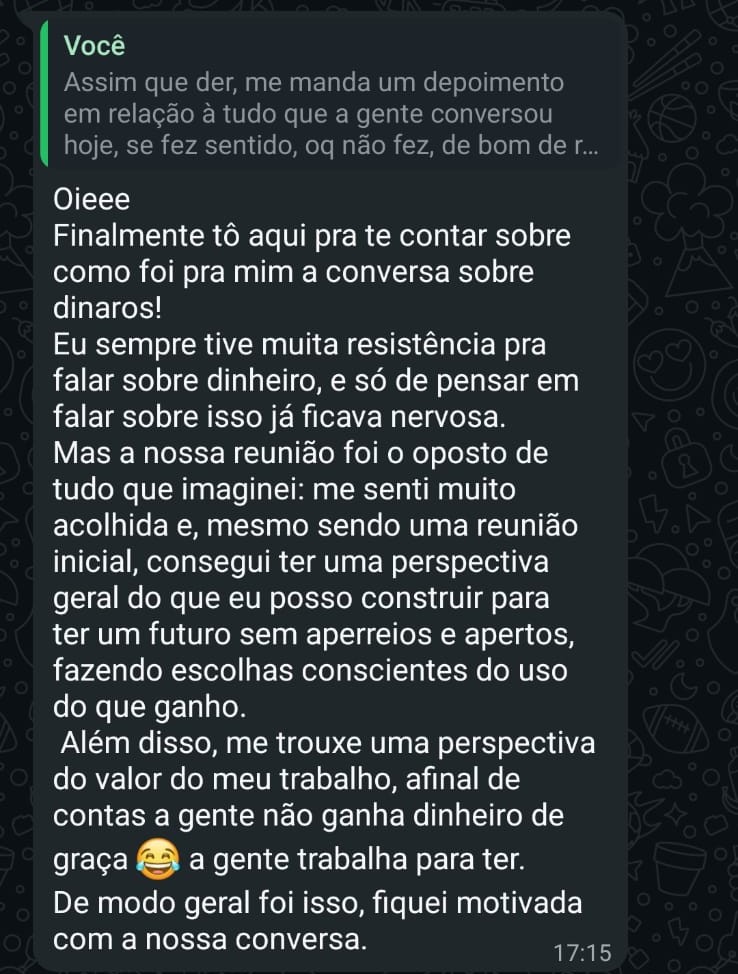 Ainda ficou na dúvida? Pode me mandar uma mensagem, que juntos vamos entender qual dos serviços é o ideal pra você.
